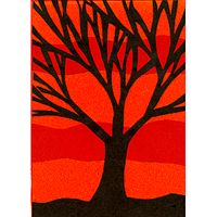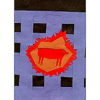 The sixth grade art students were shown examples of fine artwork by Cubist artists and told to think of images they could simplify enough to cut out of construction paper. They used ideas from their own imagination to create these various graphic compositions.